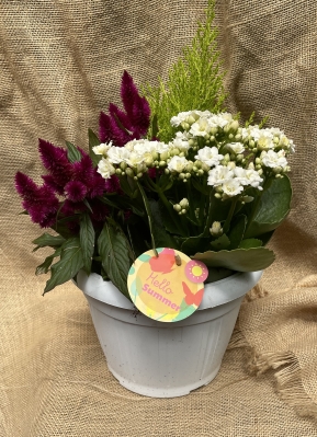 A substantial Planted Pot of shrubs and seasonal flowers. Image for representative purposes only. Ideal for door steps, Patios or Grave side. Long lasting , keep watered.